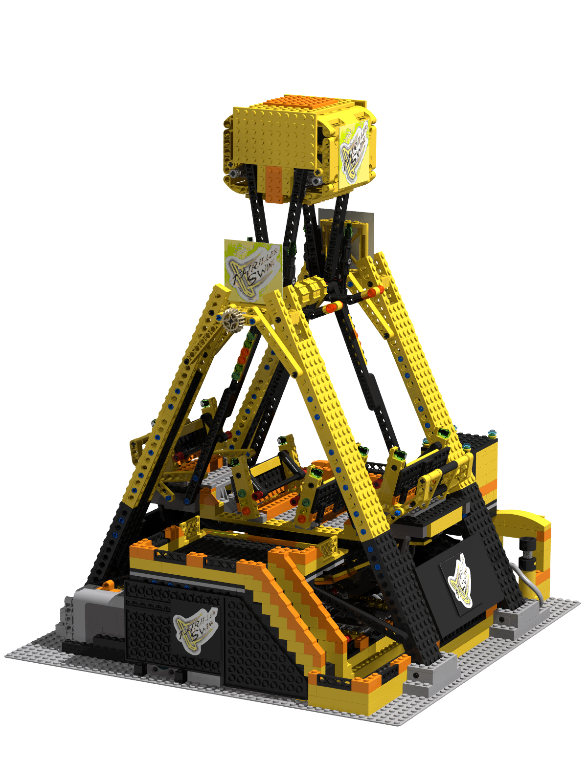 known as the boat in almost every amusement park in the world. This design is built as realistic as possible and can even go upside down. This design initially works with 2 motors. 1 x M motor for control height-adjustable drive and 1 x motor L for the drive itself. two platforms that go up and down for getting in and out of the attraction by means of a pump system.